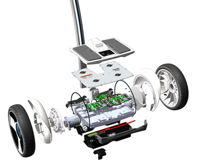 平衡车主要由控制器、蓄电池、陀螺仪、支架杆件和两个直流无刷轮毂电机构成,其运作原理主要是建立在一种被称为“动态稳定”(Dynamic Stabilization)的基本原理上。 利用车体内部的陀螺仪和加速度传感器,来检测车体姿态的变化,并利用伺服控制系统,精确地驱动电机进行相应的调整,以保持系统的平衡。是现代人用来作为代步工具、休闲娱乐的一种新型的绿色环保的产物。